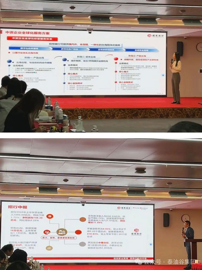 随后,招商银行工作人员展开专业分享:从全球产业格局切入,剖析中资企业全球化机遇与挑战,系统介绍涵盖数字化结算、跨境融资等的全链条服务方案,详解跨境金融品牌优势,并阐述私人银行的全球资产配置、家族财富传承等特色服务,精准对接侨商融资、资金管理、全球化经营需求,提供定制化解决方案与金融支撑思路。